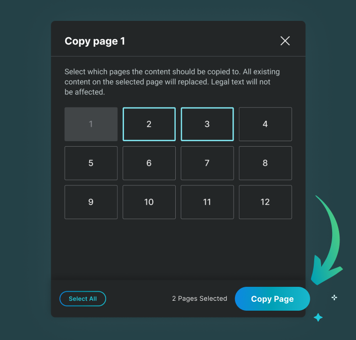 - Give it a click, and a modal will pop up, letting you decide which page you want to copy and where you want to paste it.