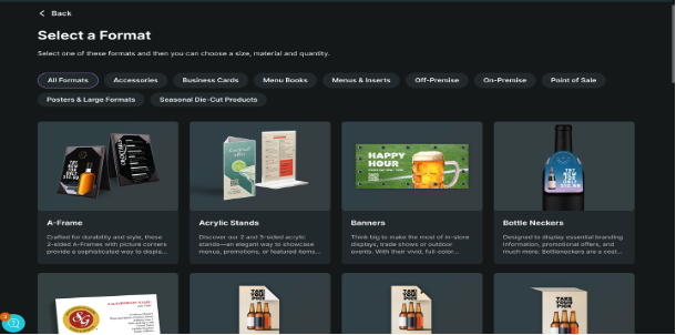 2. This opens the order flow where you’ll choose your format and design options.