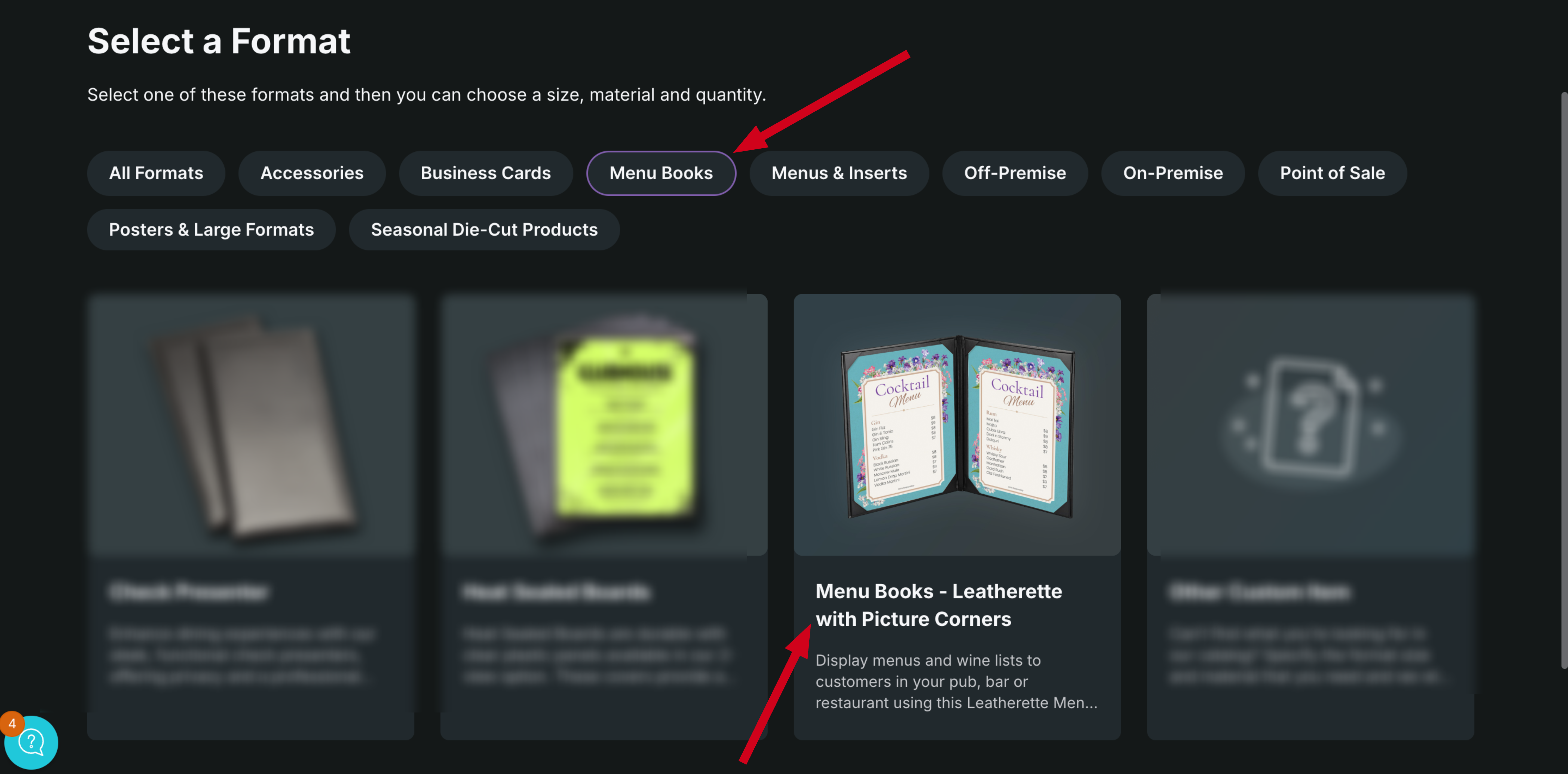 When placing an order for Menu Books, you can select the Menu Books tab under format options.