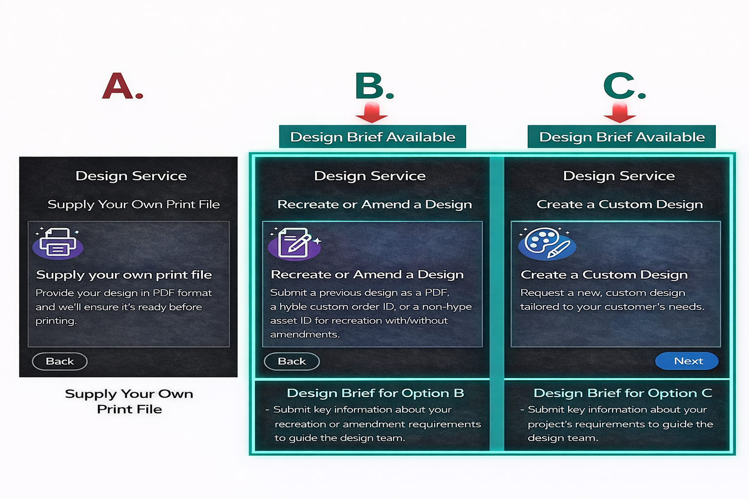 If you select “Supply Your Own Print File” (Option A), a design brief will NOT be included.